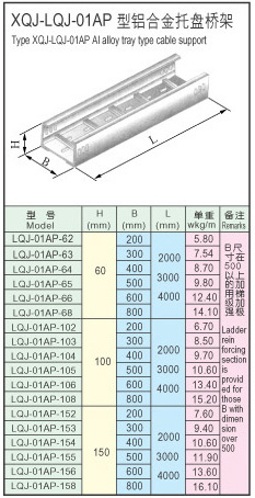 產(chǎn)品名稱(chēng): XQJ-LQJ-01AP 型鋁合金托盤(pán)橋架