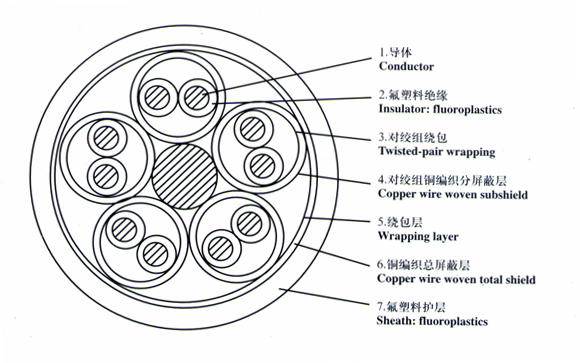 3.電纜的不延燃性(阻燃特性):應通過GB12666.5-90中B類成束燃燒試驗。單根電線電纜垂直燃燒試驗應通過GB12666.2-90 4.鹵酸氣體釋放量,符合IEC754-1 5.燃燒氣體的PH值和導電率,符合IEC754-2 PH≥4.3 電導率≤10μS/mm。 基本型號及名稱