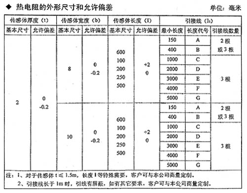 ※ 熱電阻的上限溫度絕緣電阻大于10M Ω。