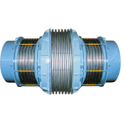 該膨脹節的二端各有一個工作波紋管,中間有一個平衡波紋管,膨脹節通過受力構件(大拉桿或舌管)來承受內壓推力,因此管系只需中間固定支架。該膨脹節只能吸收軸